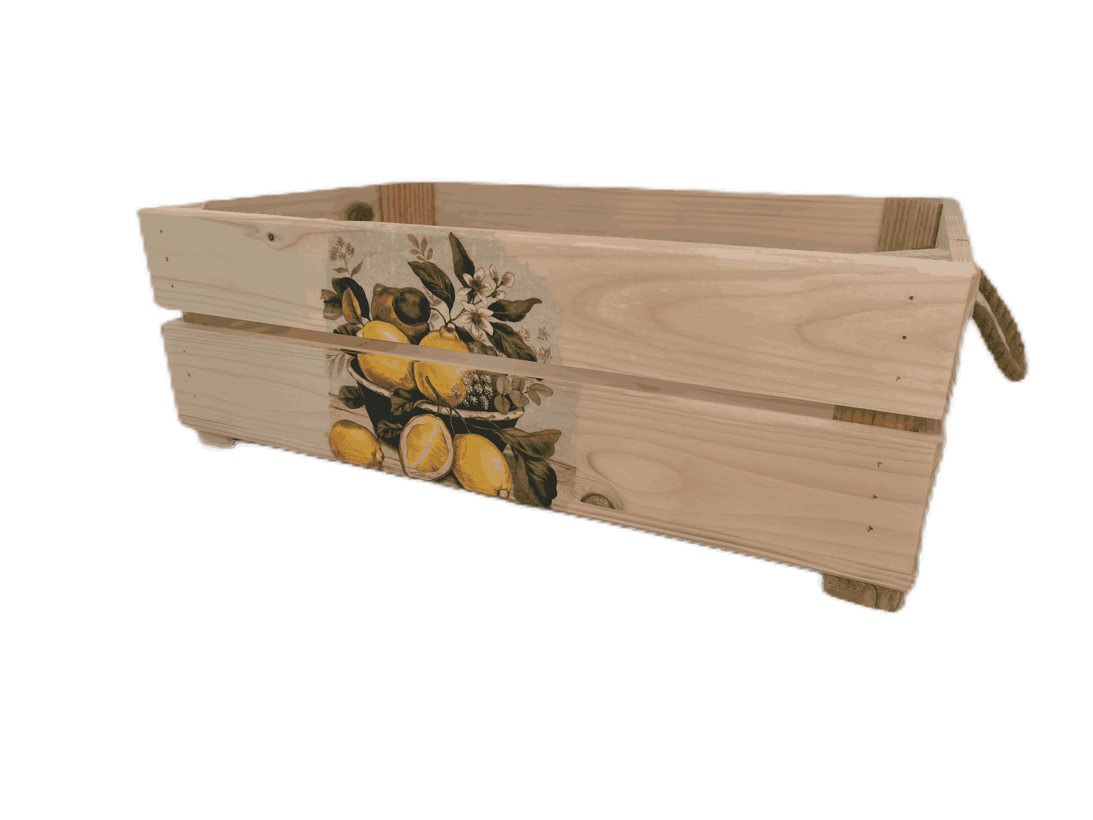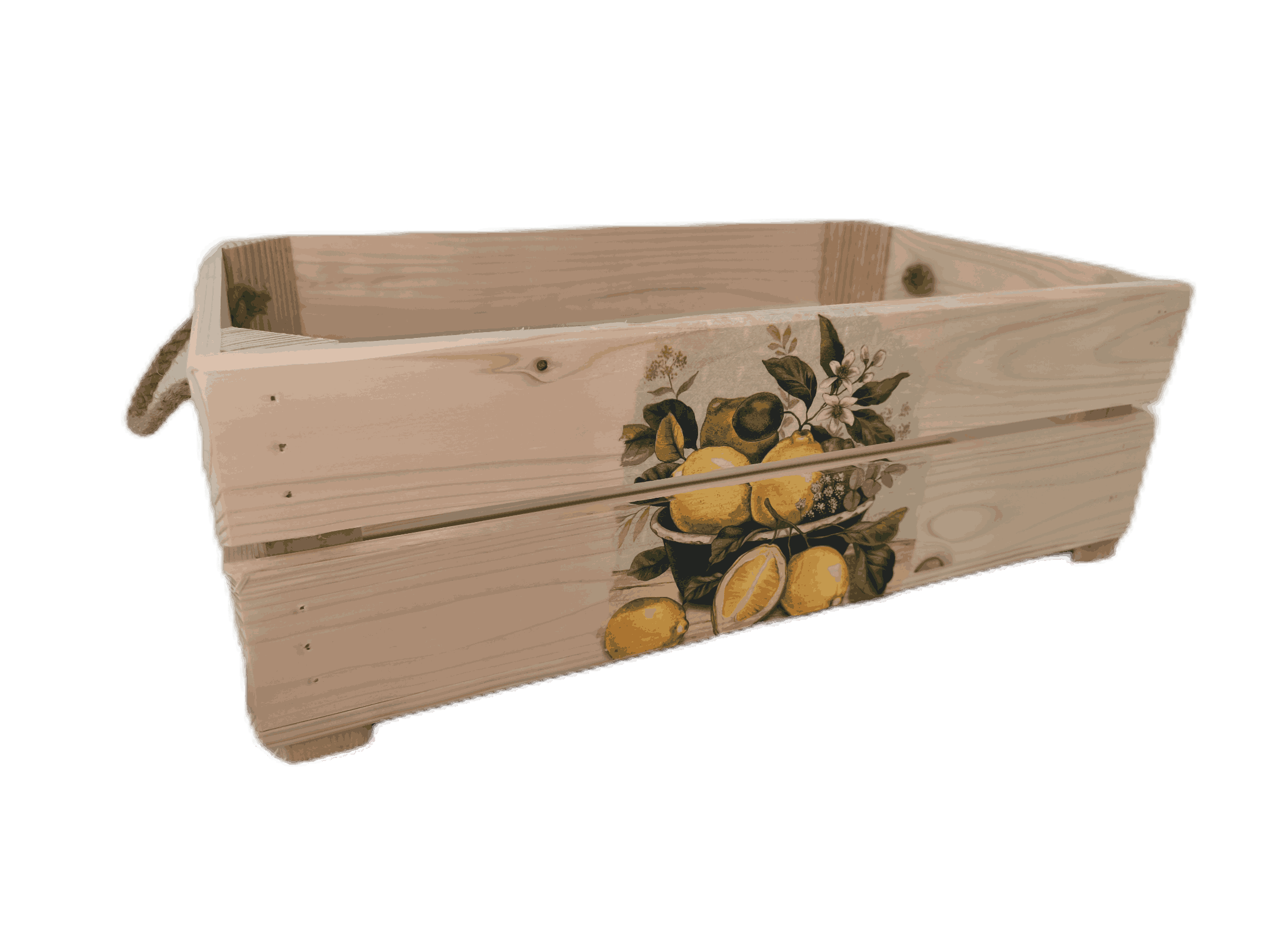 Povrchová úprava: opálené a broušené dřevo, obrázky metodou decupage