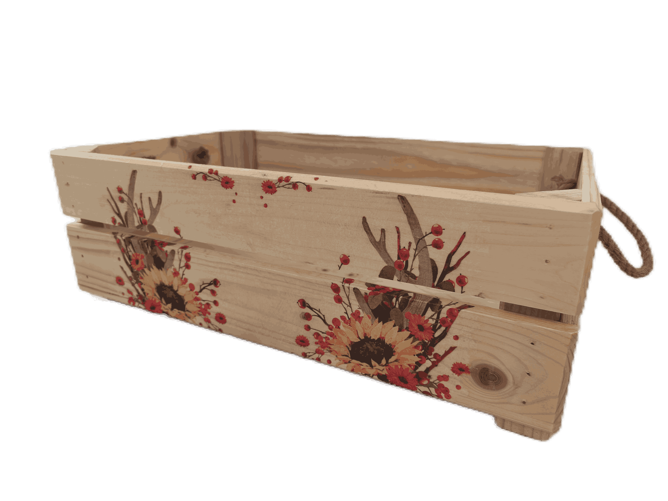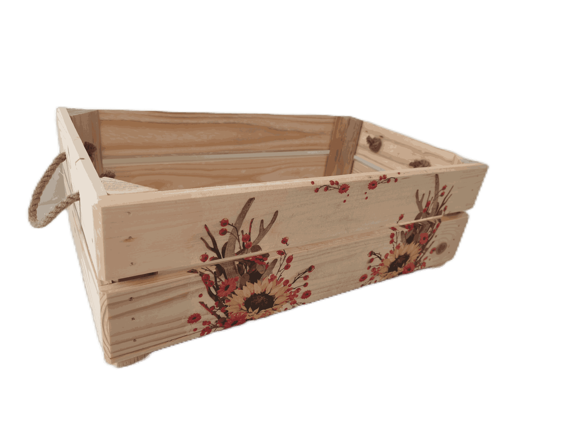 Povrchová úprava: opálené a broušené dřevo, obrázky metodou decupage