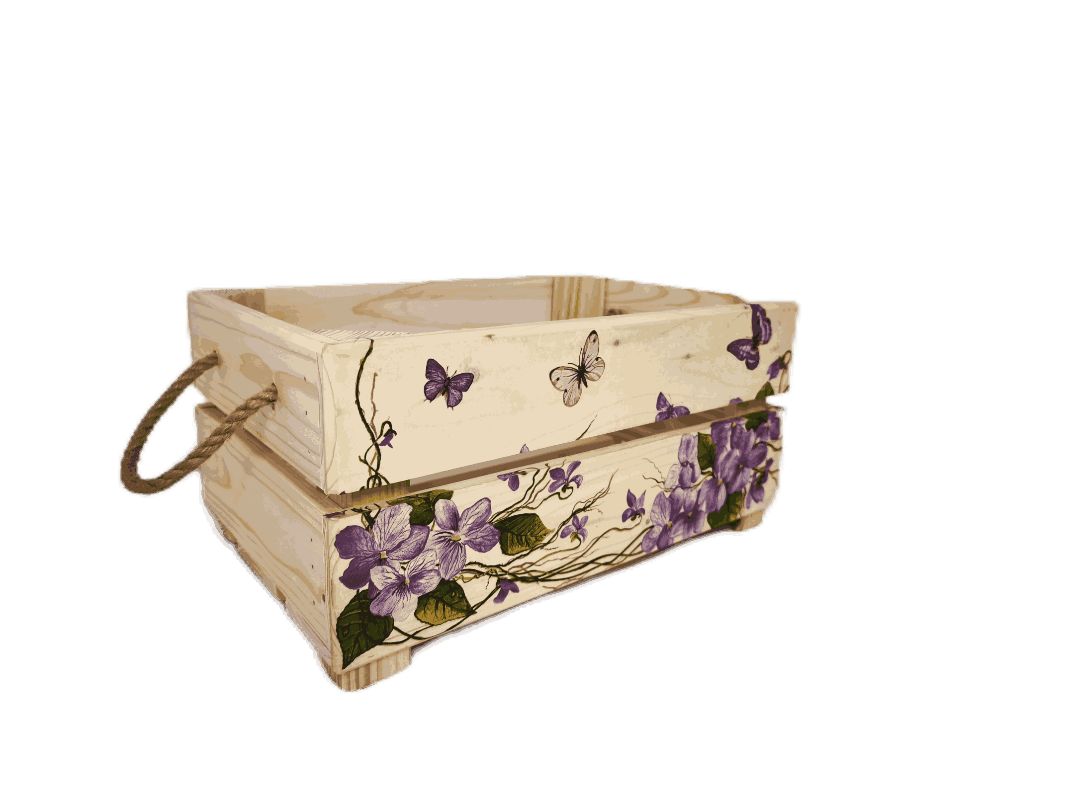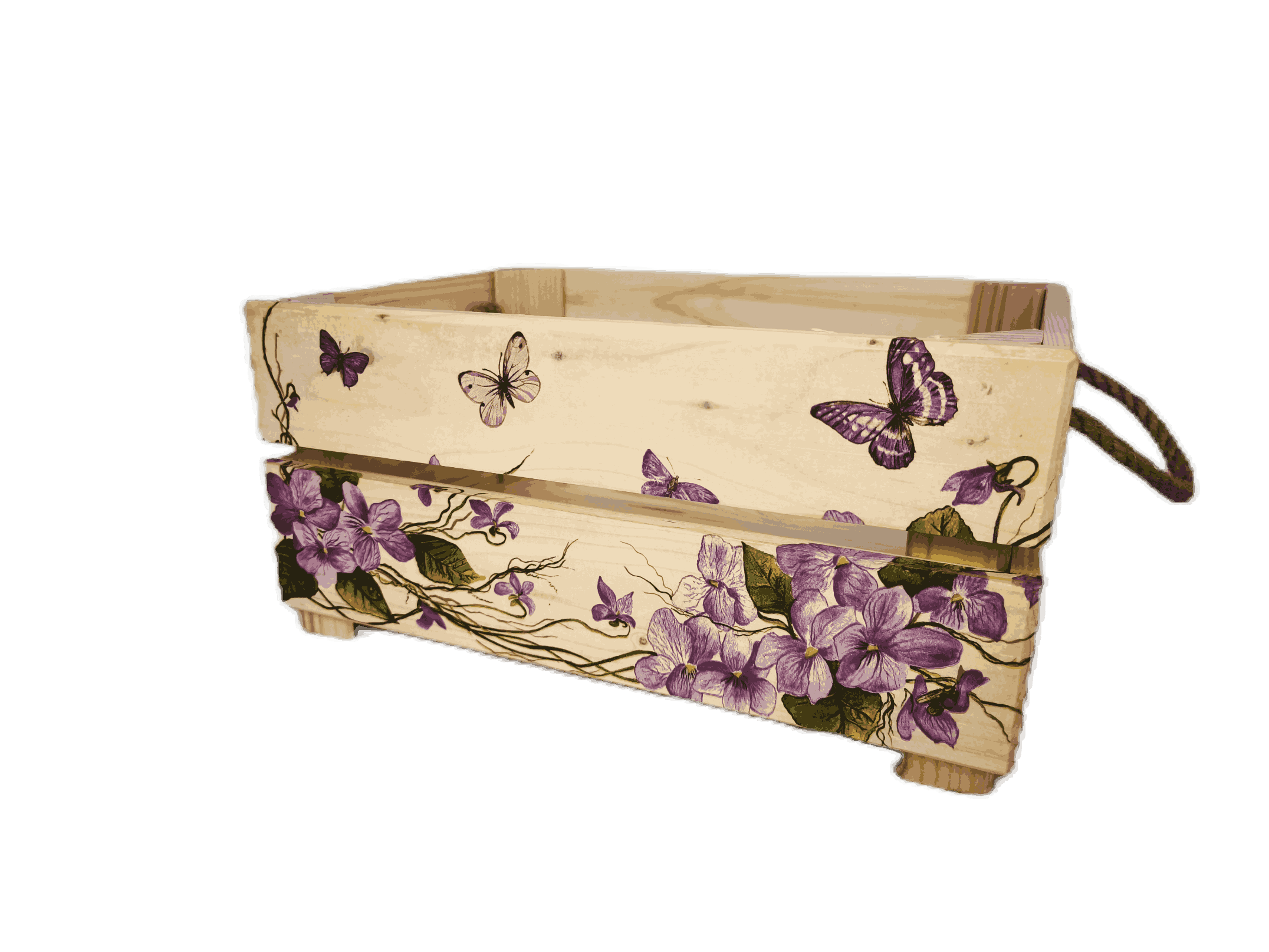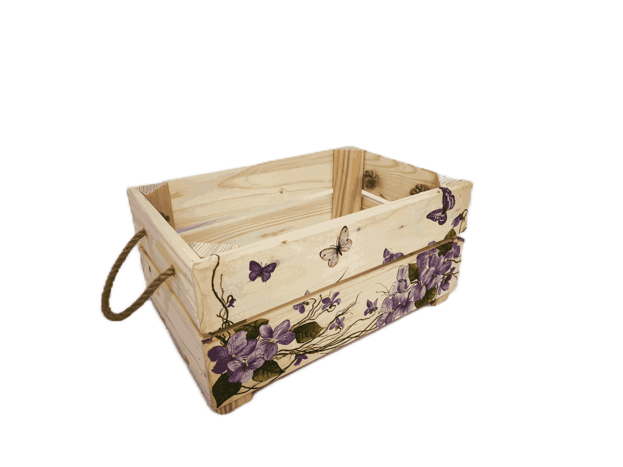 Povrchová úprava: přírodní a broušené dřevo, obrázky metodou decupage