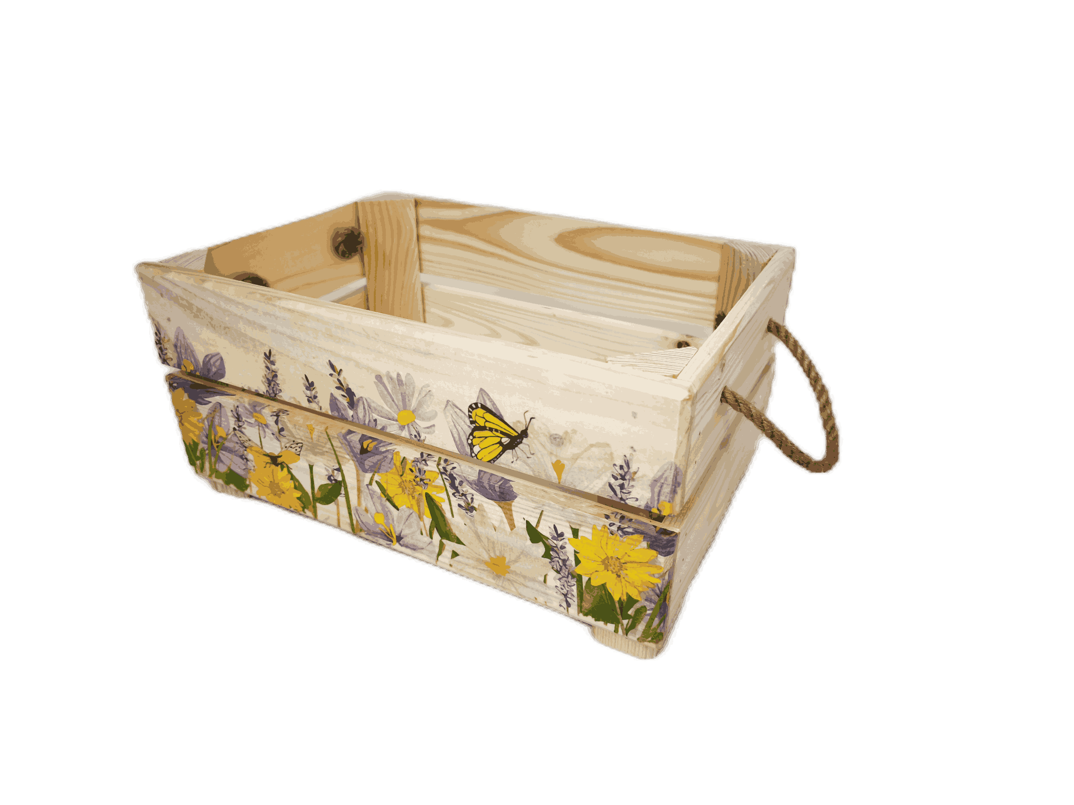 Povrchová úprava: přírodní a broušené dřevo, obrázky metodou decupage