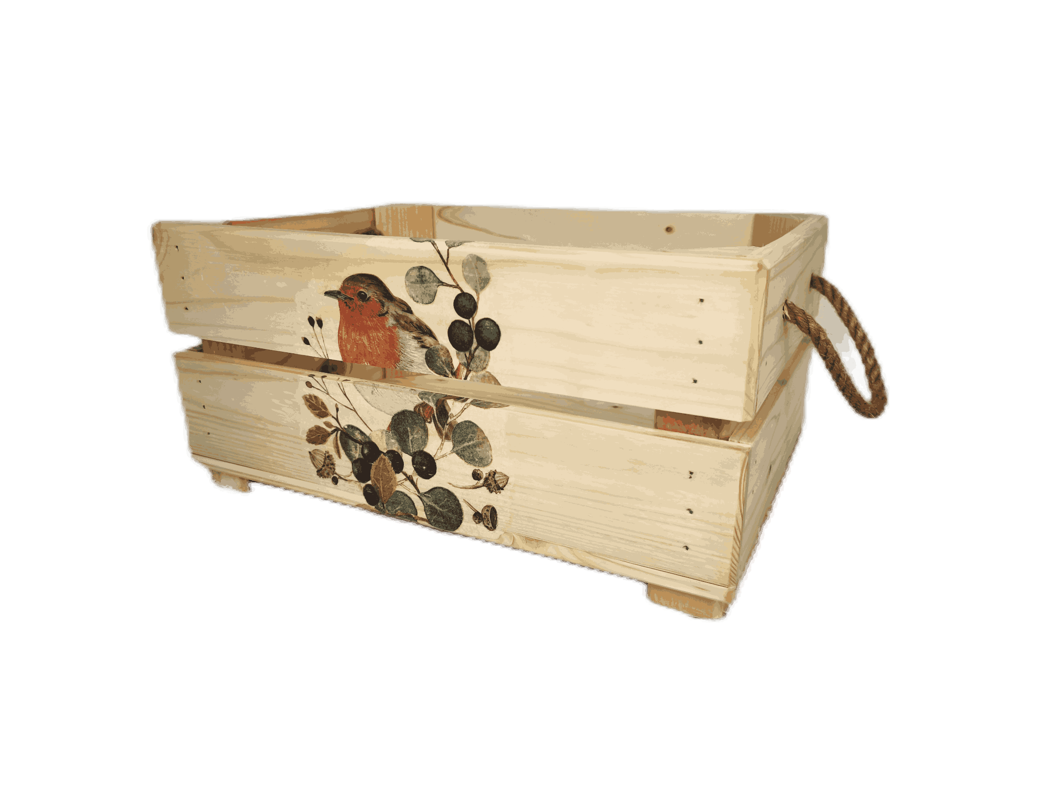 Povrchová úprava: přírodní a broušené dřevo, obrázky metodou decupage