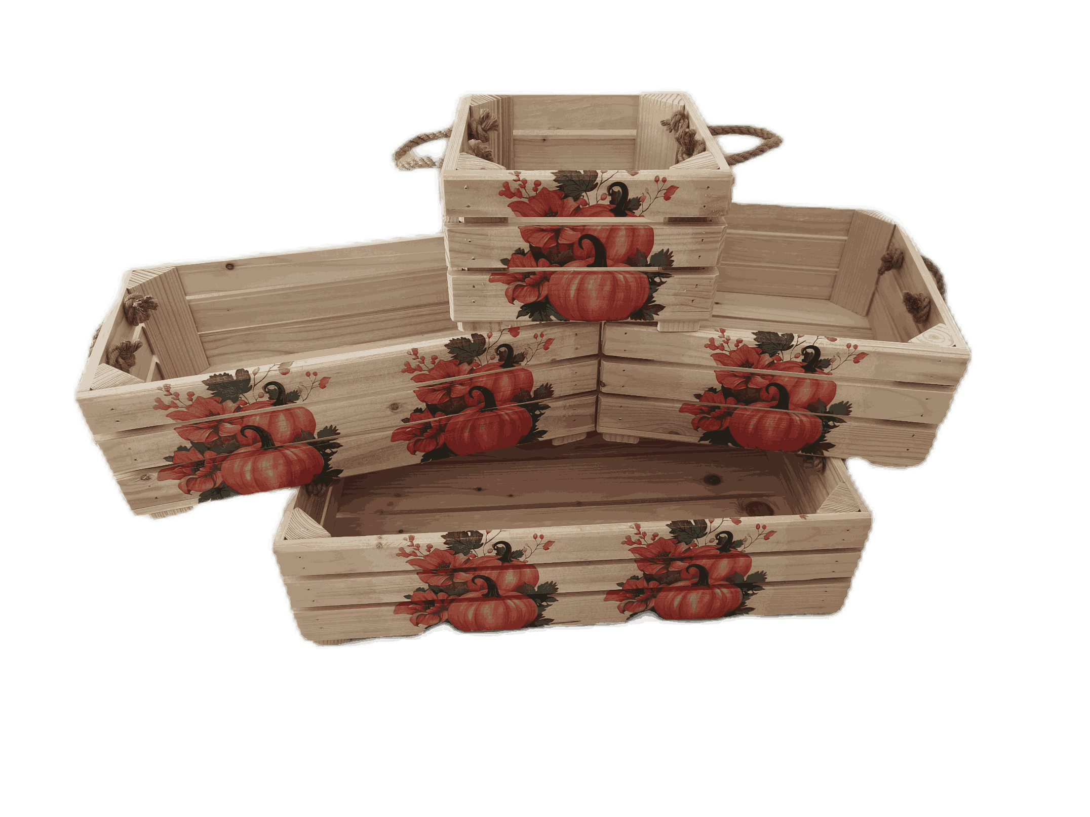 Povrchová úprava: přírodní nebo opalované a broušené dřevo, obrázky metodou decupage s lakovou úpravou