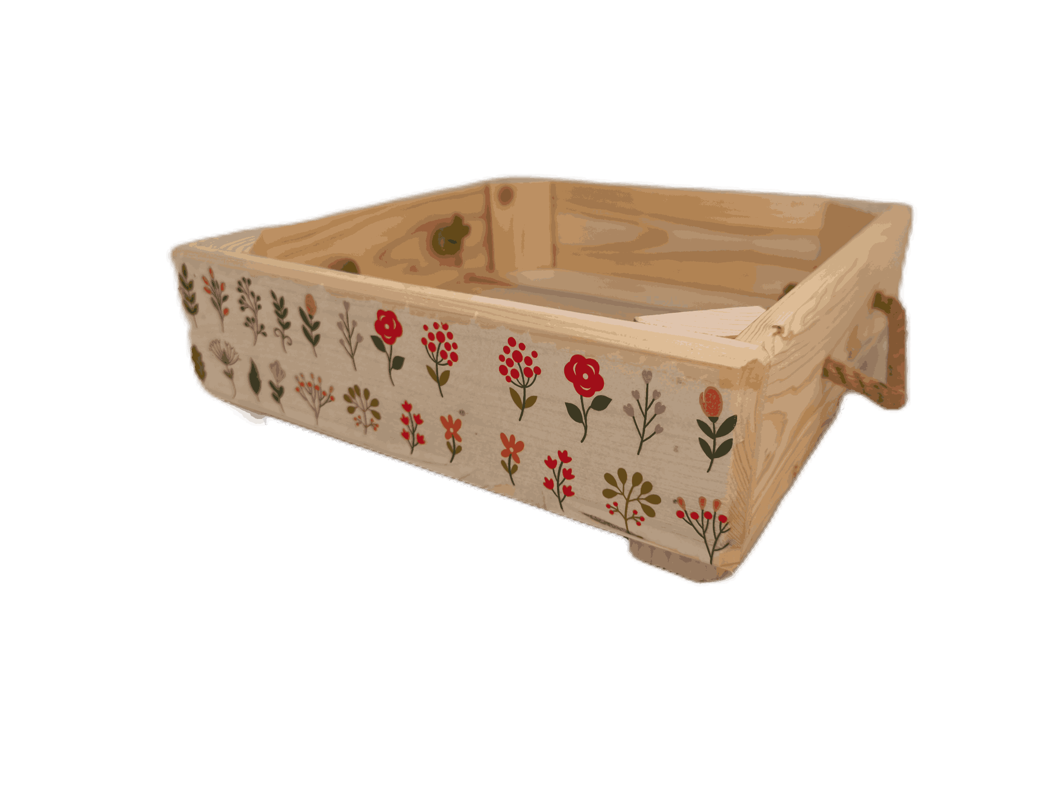 Podnoska je originálním doplňkem do Vašeho domova. Tato podnoska má praktická postranní ucha, díky kterým ji můžete pohodlně přenášet. Ucha zároveň dotváří jedinečný design těchto bedýnek. Využít ji můžete ale také k organizaci předmětů, aranžování květin či dárkových předmětů. Podnoska je k dispozici v různých velikostech a představuje rovněž originální a krásný dárek  Vaše blízké!