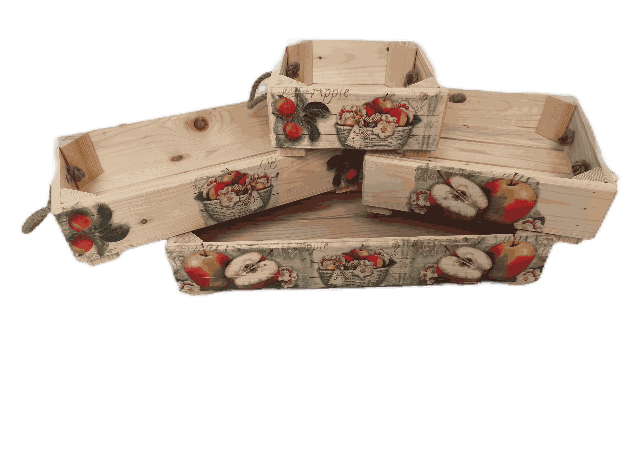 Podnoska je originálním doplňkem do Vašeho domova. Tato podnoska má praktická postranní ucha, díky kterým ji můžete pohodlně přenášet. Ucha zároveň dotváří jedinečný design těchto bedýnek. Využít ji můžete ale také k organizaci předmětů, aranžování květin či dárkových předmětů. Podnoska je k dispozici v různých velikostech a představuje rovněž originální a krásný dárek  Vaše blízké!